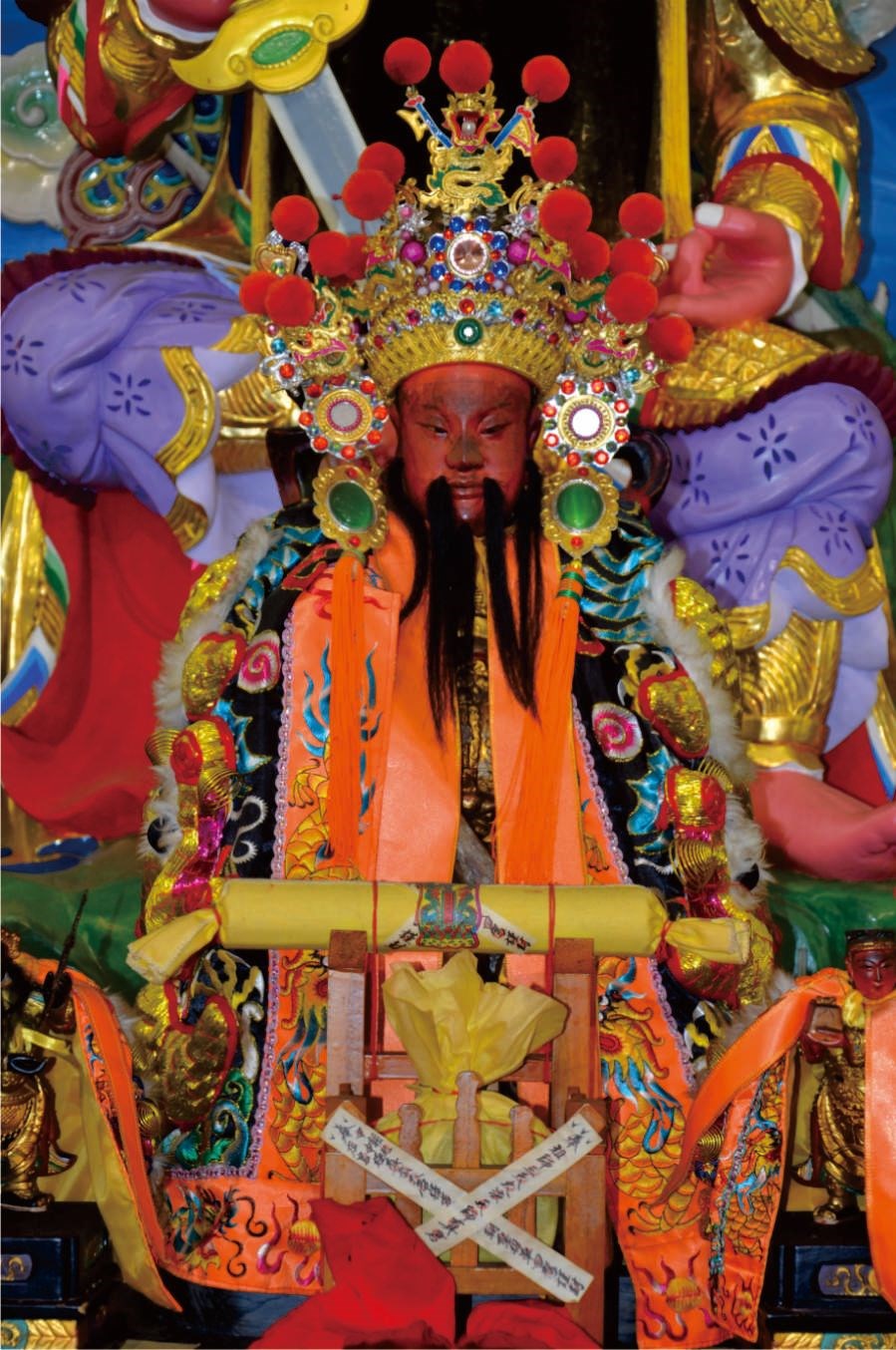 據大寮鄉誌記載:玄天上帝金尊係下淡水溪(高屏溪)一欉水流柴,依頭、中、尾分別雕刻三尊帝爺公金身,除供奉於朝中宮外,另兩尊則祀於鳳山竹仔腳北極殿,以及九曲堂北極殿(金尊稱三胞胎是也)。